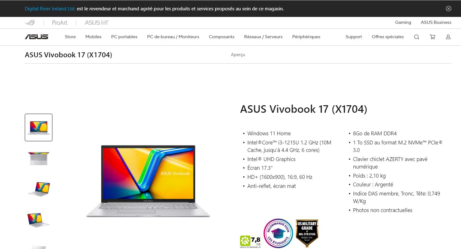 Ordinateur portable Asus Vivobook 17 avec clavier AZERTY
